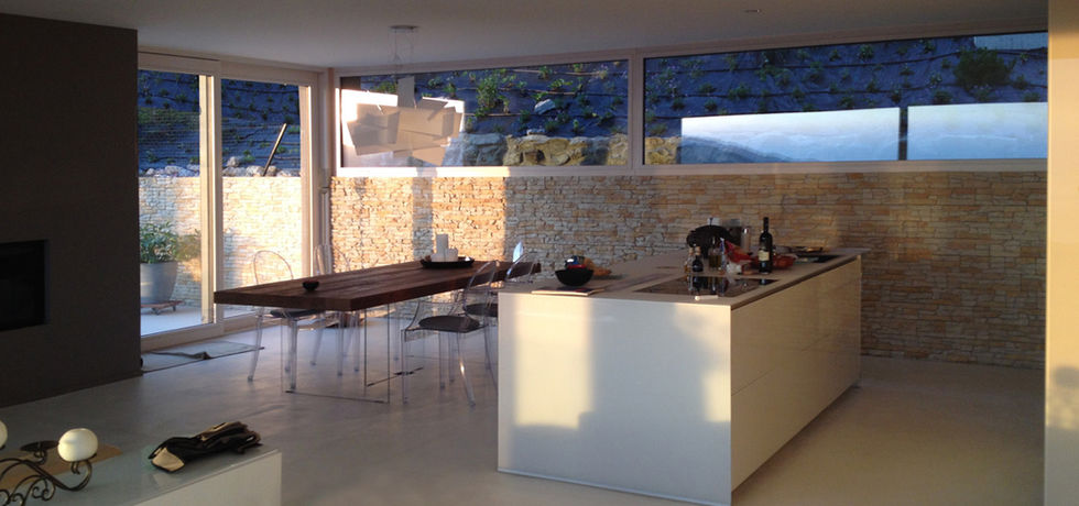 Création d’une villa familiale implantée sur un terrain en pente bénéficiant d’une vue dégagée à l’ouest sur le lac.
